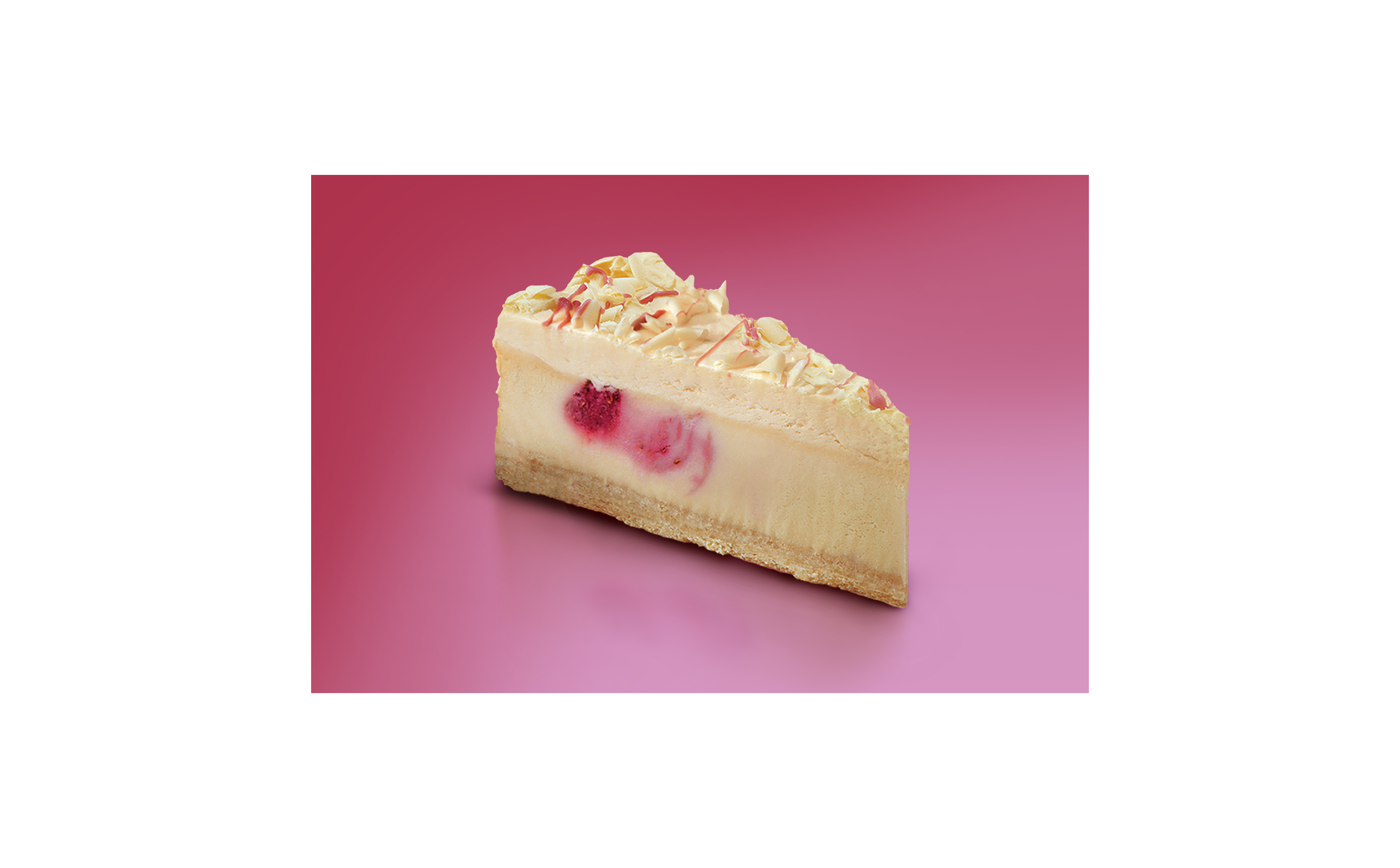 (Frozen - Ready to Serve in 3 - 4 Hours) Made using natural ingredients, Vanilla Cake Layered and Topped with Luscious Strawberry Fruit Cream.Cheesecake By Slice