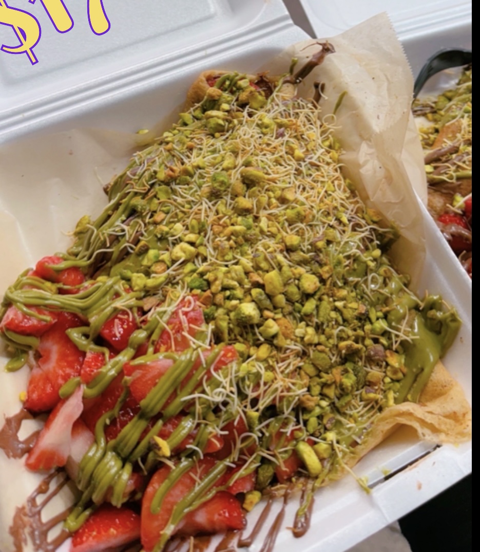 Stuffed with Lechera(Condensed Milk) and Strawberries. Topped with Lechera(Condensed Milk) Kiwi and Pecans.SIGNATURE CREPE 3